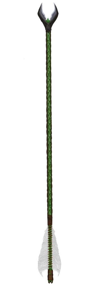 Древко этой стрелы покрыто мелкой зелёной чешуёй, а её раздвоенный железный наконечник напоминает зубы змеи. При попадании в цель активированная стрела-гадюка превращается в гадюку. На цель действует яд гадюки, как если бы её укусили, а сама гадюка приземляется в свободное пространство рядом с целью.