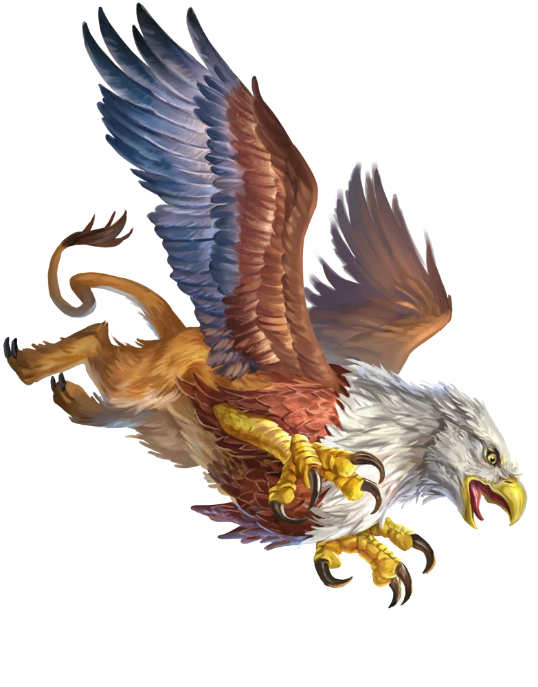 В ближнем бою клюв +14 [+9/+4] ( смертоносное 1d10), Урон 2d8+4 колющий В ближнем бою лапы +14 [+10/+6] ( быстрое), Урон 2d6+4 колющий В ближнем бою крыло +14 [+9/+4] ( длинное 10 футов), Урон 2d6+4 дробящий Удар в полёте грифон совершает Полёт на расстояние вплоть до своей скорости полёта и в любой момент этого движения наносит два Удара лапами. Каждый Удар совершается по отдельному существу, штраф за последовательные атаки применяется к ним как обычно. Наскок грифон совершает Перемещение и Удар лапами по окончании этого движения. Если в начале Действия грифон был спрятанным, он остаётся спрятанным, пока не завершит атаку.