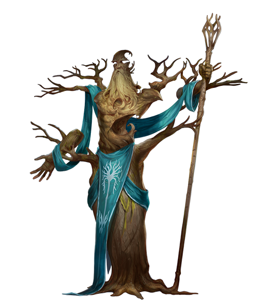 В ближнем бою посох +16 [+11/+6] ( двуручное d8), Урон 2d4+10 дробящий Врождённые мистические заклинания СЛ 22; 7 круг планарный переход (неограниченно; только на Астральный план, Стихийные планы или Материальный план); 5 круг древесный путь (неограниченно); 2 круг опутывание (×2), невидимость (×2), форма дерева; Фокусы (3 круг) обнаружение магии; Постоянные (6 круг) разговор с растениями, полиглот