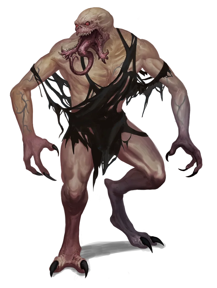 Исчадия греха лишь отчасти напоминают гуманоидов, из плоти которых были созданы, и как правило, выглядят как жутко истощённые существа с неестественно длинными руками и приспособленными к пальцехождению ногами. На каждой конечности исчадий греха по три коротких когтистых пальца. Эти создания бледны и безволосы, и сквозь их кожу проступают набухшие вены, которые при более пристальном рассмотрении образуют узоры, подозрительно напоминающие искажённые руны. Головы исчадий удлинены, носов у них нет — их заменяют отверстия-прорези, а основное внимание на их лицах привлекают красные глаза и напоминающая жвалы нижняя челюсть, которая, раскрываясь надвое, обнажает педипаль- пы, заканчивающиеся крошечными трёхпалыми ладонями, и длинный гибкий язык.