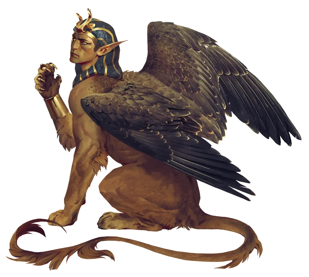 Сфинксы — загадочные существа с львиным телом, человеческими головой и торсом и крыльями огромной птицы. В легендах их часто называют ужасными чудовищами, и хоть доля правды в этом и есть, поскольку сфинксы вспыльчивы и способны принять за смертельное оскорбление любую, даже пустячную обиду, они тем не менее крайне умны.